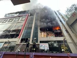 A massive fire engulfed an electronics showroom building in Mumbai, triggering panic in the busy commercial area and prompting authorities