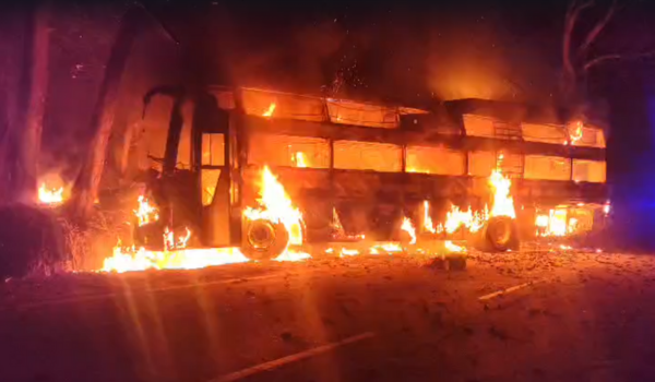 A private sleeper bus caught fire on the outskirts of Bengaluru, triggering panic among passengers but ending in relief as